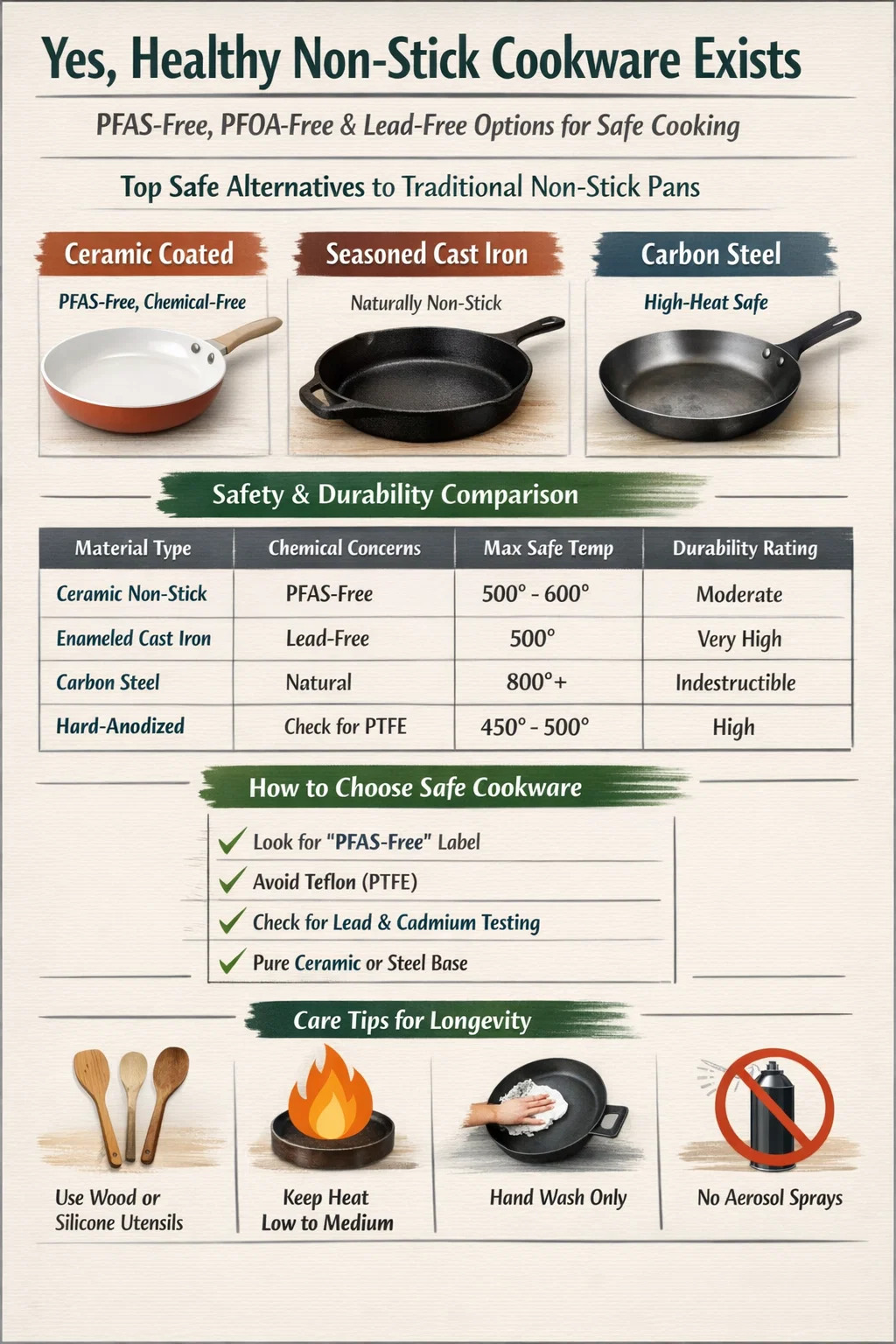 Saat beralih dari pelapis sintetis, ada beberapa bahan yang menonjol karena keamanan dan kinerjanya. These materials do not leach "forever chemicals" into your food even if the surface is accidentally overheated.