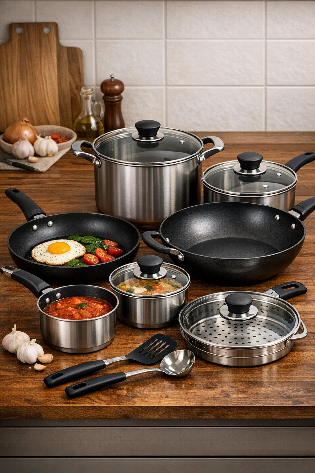 Tutup transparan: Banyak set kini hadir dengan tutup kaca tempered, memungkinkan Anda melihat proses memasak tanpa membuka tutupnya, menghemat energi dan tenaga.