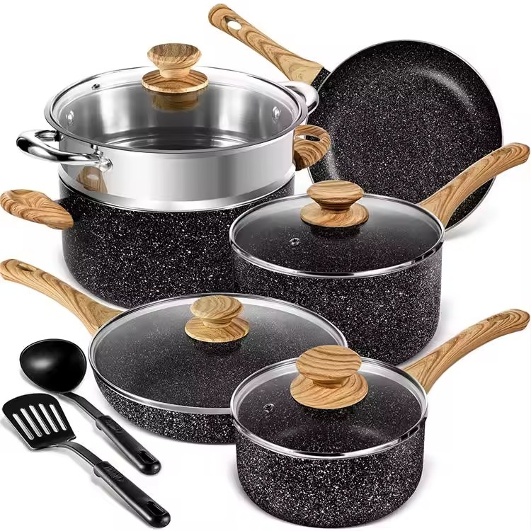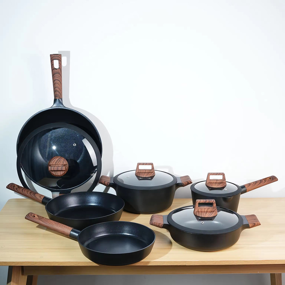 Rumah / Produk / Set Peralatan Masak / Set Peralatan Masak Anti Lengket Panci dan wajan peralatan dapur hitam