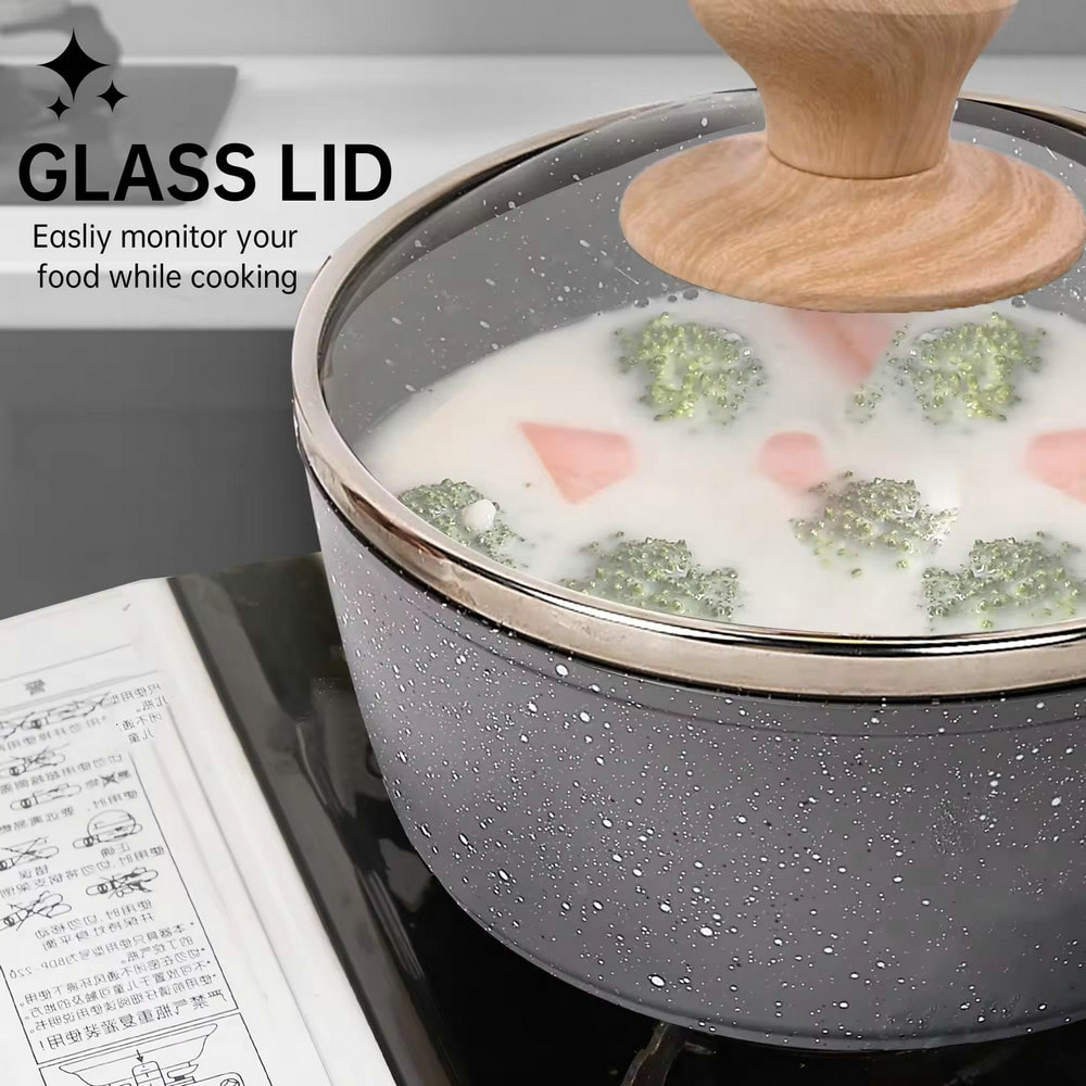 Rumah / Produk / Panci Saus / Panci Susu / Panci saus anti lengket keramik aluminium khusus berbagai ukuran dengan pegangan