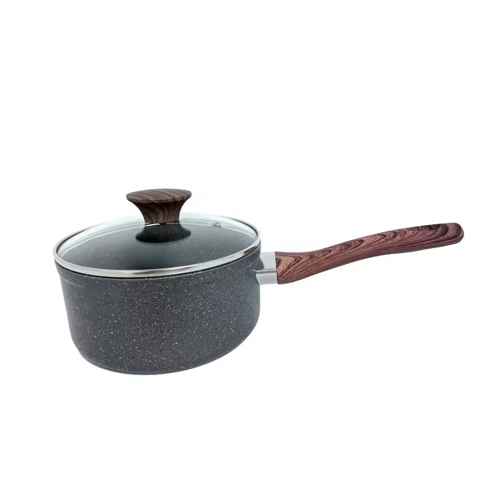 Panci Saus Dilapisi Marmer Aluminium Ditekan Dengan Gagang Kayu