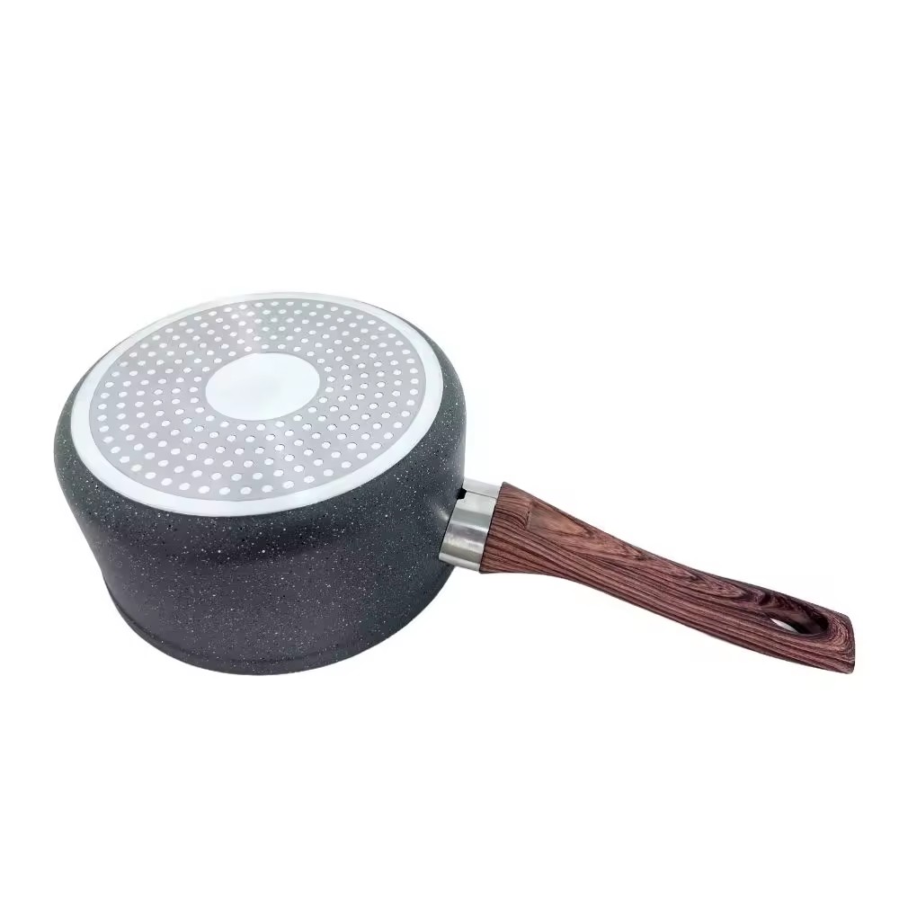 Panci Saus Dilapisi Marmer Aluminium Ditekan Dengan Gagang Kayu Wholesale